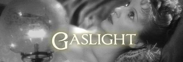 Patrick Hamilton’s 1938 stage play Gas Light, which was adapted into British and American films in the 1940s, is the origin of the term “gaslighting” that is used so much today. The story concerns a manipulative, evil man who kills a woman to steal rubies. He couldn’t find the rubies at the time of the murder, so he left and concocted a plan to come back and find them. Assuming an alias, he marries a lady who has the money to purchase this house years later. He attempts to drive his wife mad by orchestrating events and then telling his wife that she imagined things. Each night he would sneak into the attic to hunt for the rubies and light the gas lamps. This would cause the gas lamps in his wife’s room to dim. She told him about the dimming of the lamps, and he would tell her that she was imagining it. She was going crazy because he was manipulating her by re-writing history and making her think she was delusional.