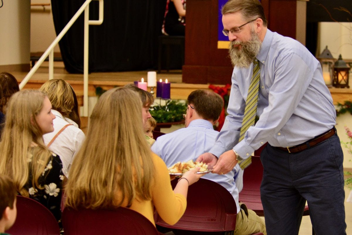A sacrament, at the most basic level, is a symbolic action ordained by Jesus Christ to which he has attached the promise of his presence and blessing (Exod 20:24; Matt 28:18-20; Luke 22:19; 1 Cor 10:1-4, 16; 11:24-25). The “sign,” on this understanding, is not simply the “elements” of water, bread, and wine. The sign is the entirety of the symbolic action which, in the case of the Lord’s Supper, is a shared meal (1 Cor 10:17). Moreover, when it comes to the Lord’s Supper, the symbolic action of a shared meal has a specific, divinely ordained context: “when you come together” (1 Cor 11:33).