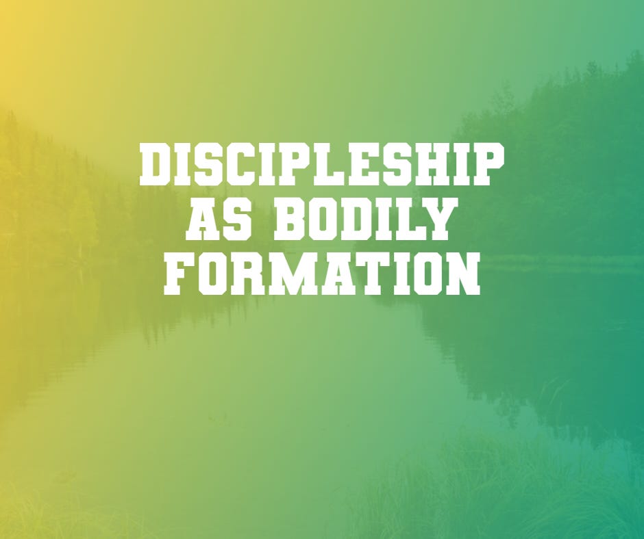 Discipleship in the Bible is also the cultivation of bodily postures. The Bible trains us to move and live and to have our being in God. True discipleship must include learning to kneel, raise hands, eat, sing, show affection, speak gently, receive, give, sit, and stand in the presence of God and others.