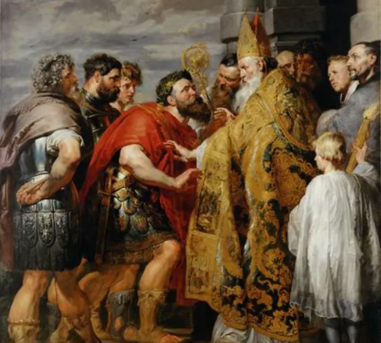 Note: The header photo is an illustration by the Dutch painter Peter Paul Rubens of St. Ambrose barring King Theodosius from the sanctuary after the Massacre of Thessalonika. He would not allow the king to enter until he repented of this massacre.