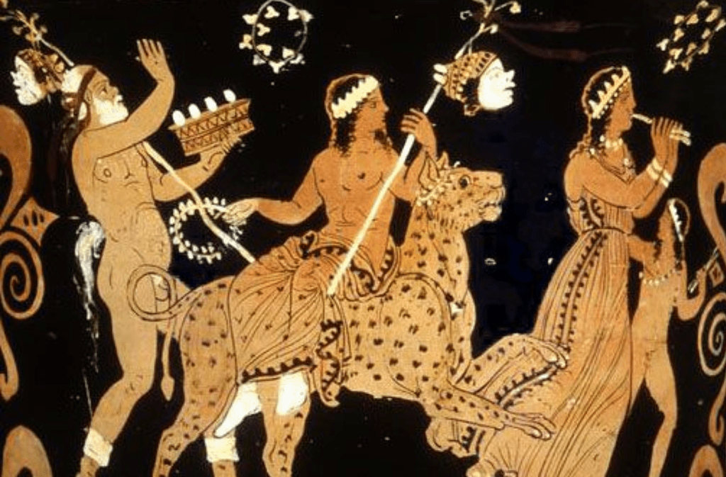 The various characters Dionysus becomes are masks of an exaggerated morphological God. And in a proto-Jungian fashion represents archetypal human characteristics and psychological sentiments. For example, Dionysus becomes female (puts on the female mask) that he might express the feminine ideals. At his core, he is still understood to be Dionysus, but his personality puts forward this mask on top of his deity to express a new identity. With helmets and breastplates, St. Paul describes the Christian life in similar terms with the “putting on” a new person through a spiritual wardrobe.