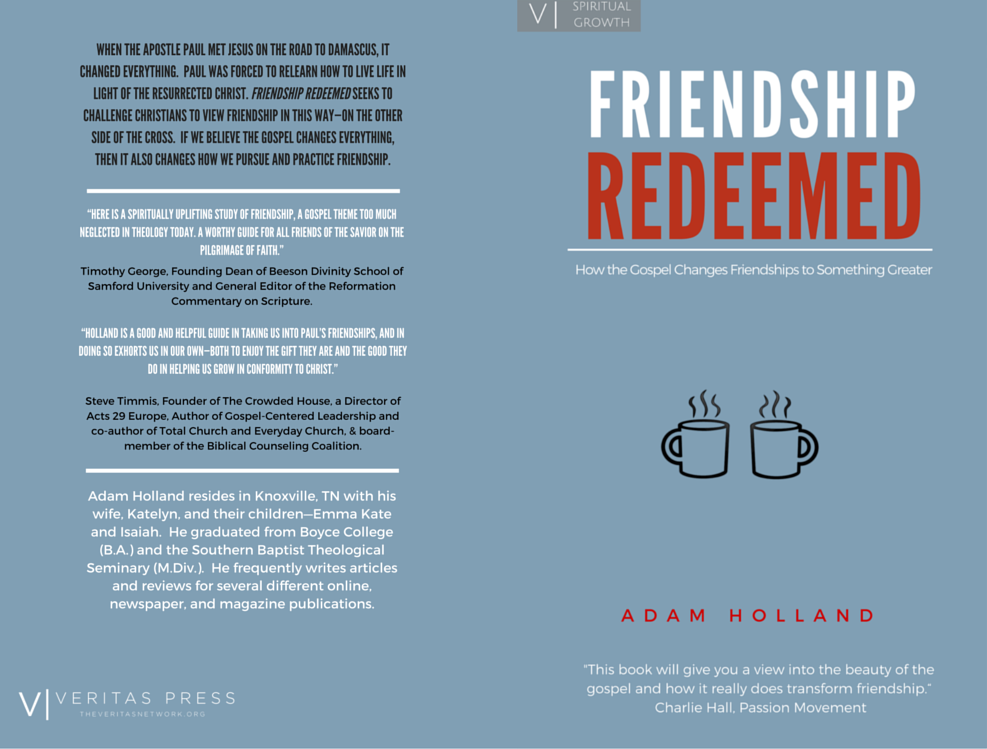 I’m always happy to read a book on friendship (just this year, I was immensely helped by Wesley Hill’s wonderful new book on the subject). However, it’s especially fun to read a book on friendship written by a really good friend (it’s like reading a book on blood draining by your favorite butcher!). In Friendship Redeemed, my comrade Adam Holland has written a fine work on a subject that desperately needs more thoughtful reflection. I think anyone who picks up the book will take away a number of very helpful insights. Particularly, the book will give you (1) a lens through which to view friendship, (2) examples of what redeemed friendship looks like, and (3) practical tips for living out redeemed friendship.