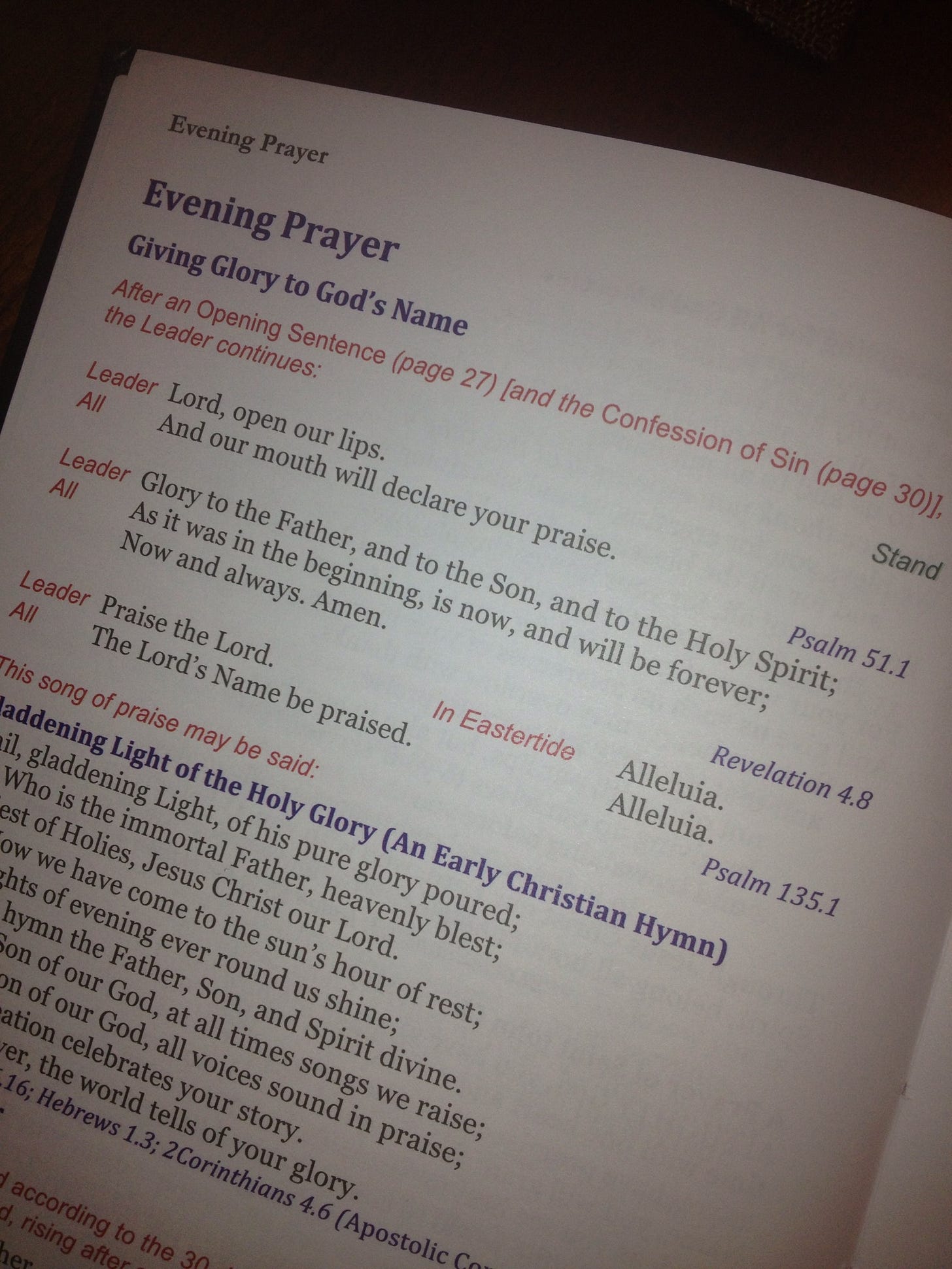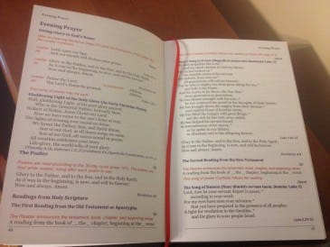 Additionally this prayer book makes it quite easy to pray through the 30 day cycle of the Psalms (well, easy in that it’s clear which ones to pray each day although some of us may not find it easy to pray through five Psalms a day, at least at first). More generally the instructions are easy to follow, there are a lot of occasional prayers provided for different life circumstances, and the rites and prayers for things like marriage, end of life, etc. seem very good and pastorally useful on first impression.