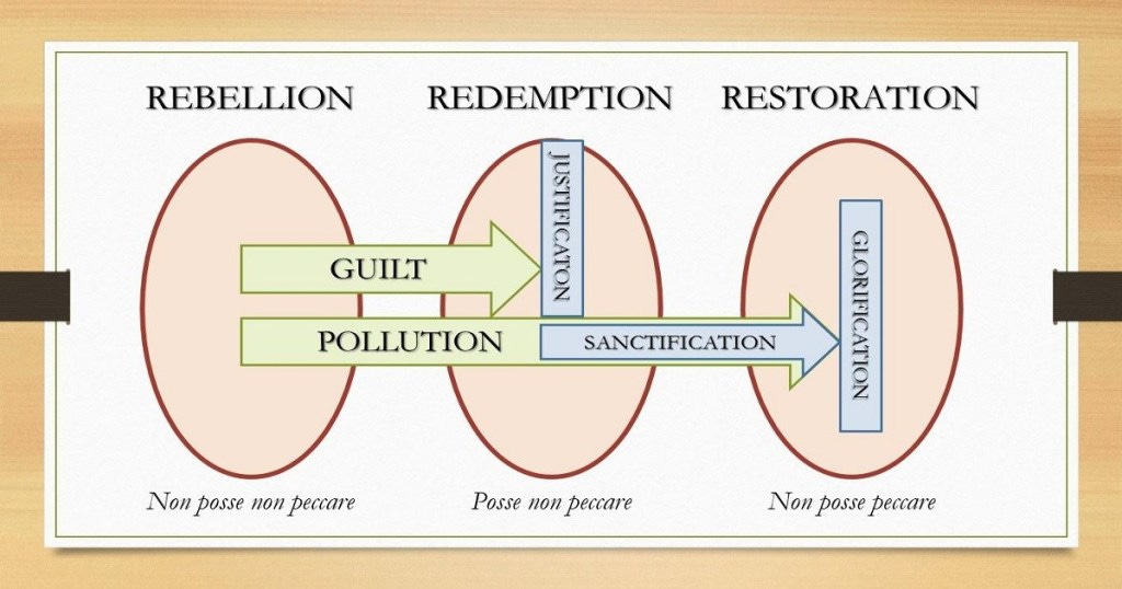 The image I am responding to can be found here. This is a diagram of humanity after we fell into sin and then as we are rescued by God. Note the two stages of rescue, justification and sanctification.